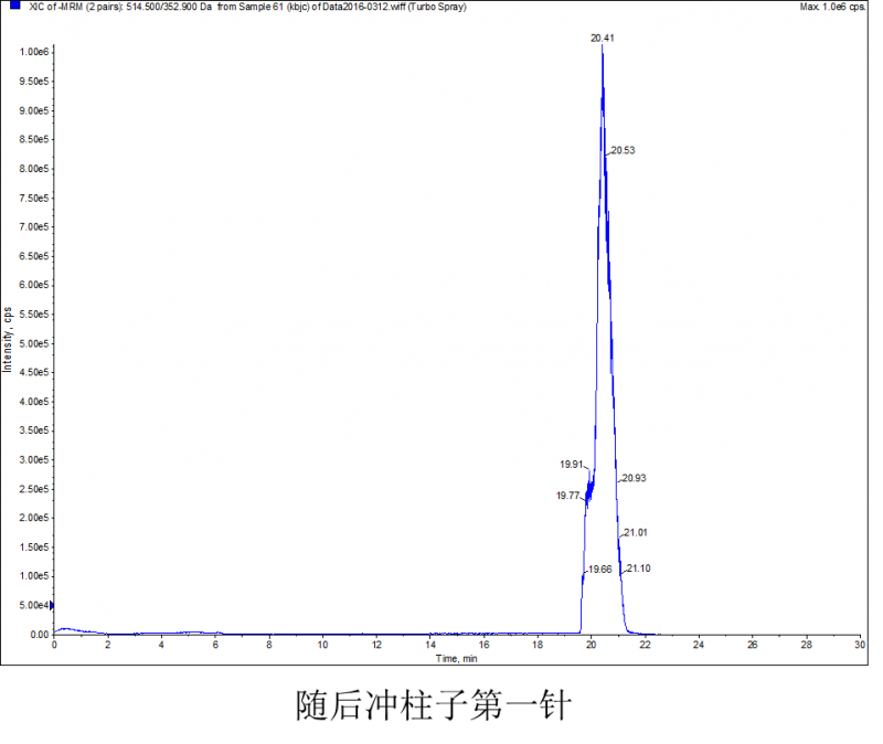 疑似系统不太干净,或样子0.45um膜了吗。就出峰问题,可在梯度开始增加有机相,我可能加到30到50看看,看出峰情况再加乙酸或胺类调峰型 发自小木虫Android客户端 |