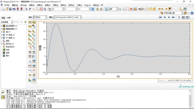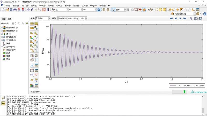 我在ABAQUS里建了根悬臂梁,在自由端加载荷。两根悬臂梁仅仅是长度不同(1000和1100),为什么自由端位移的图像差这么多? 大神求教 1100阻尼比0.005,5000N.jpg 1000阻尼比0.005,5000N.jpg |