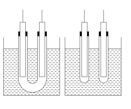 如图,为了在熔融合金液体中产生电场,有下述两种方法,分别是采用u形管和两个直管,管内装有相同尺寸的电极,并赋以相同的电压大小,那么问题来了: 1.不考虑静电屏蔽,哪种装置在液体中产生的电场强度更强?u形管的两根电极可通过空气导通吗? 2.电极和试管需要密封吗?如黑色部分所示,或者把试管内抽真空。 电极装置.png |