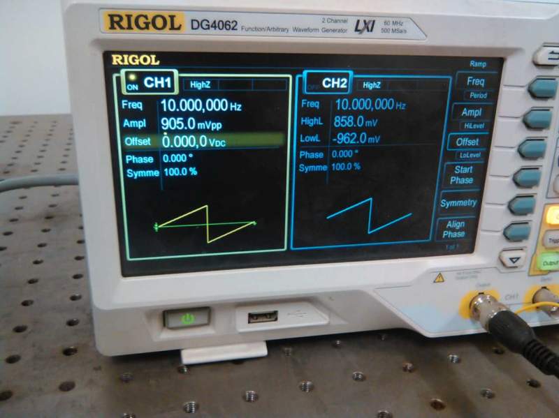 信号发生器设置好参数,设置的是锯齿波,但是输出在示波器上显示的如图,波形不太准,重点是波形设置希望是-450mv-450mv,但是示波器读数最大值280mv,最小值-728mv,调节信号发生器的Offset参数示波器显示也基本没有变化。 不知道是哪里不对 求助!!!! 示波器波形.jpg 信号发生器设置.jpg |