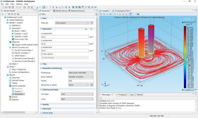 Comsol做最简单的电流场模拟,请教为什么会和预计的不一样