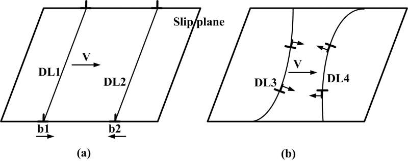 问题1: 图(a)中两伯格斯矢量平行的刃型位错相互运动,运动后结果会怎样?是反应没了么??? 问题2: 图(b)中为两弯曲的刃型位错,相互运动结果又如何?? 希望各位前辈给出运动结果和理由,多谢了!!! ![]() |