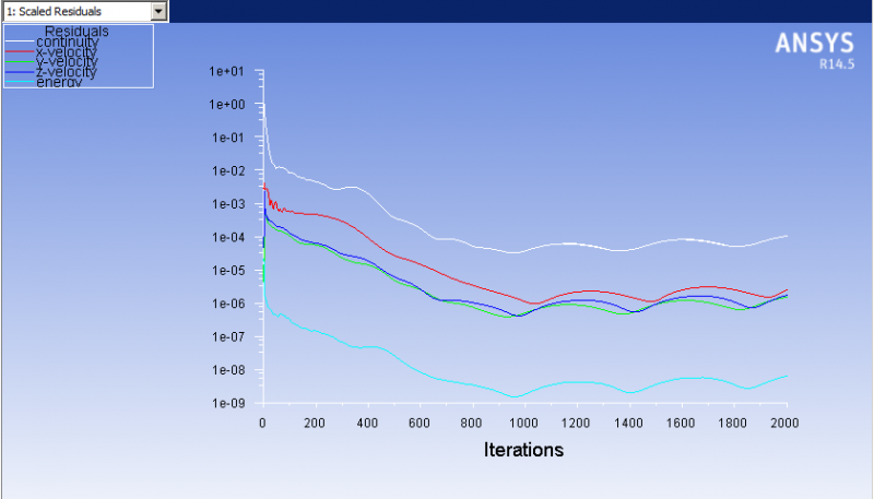 前几天提问一个帖子,现在又有问题。 残差线比较奇怪,continuity只能降到10-3以下,加密过网格,也调小过松弛因子和换不同的求解器,作用不大。 周期性条件,也没法看质量守恒;能看的监测值很稳定,1000步基本没变化。 请指教能否认为收敛呢?谢谢! 1.png 2.png |