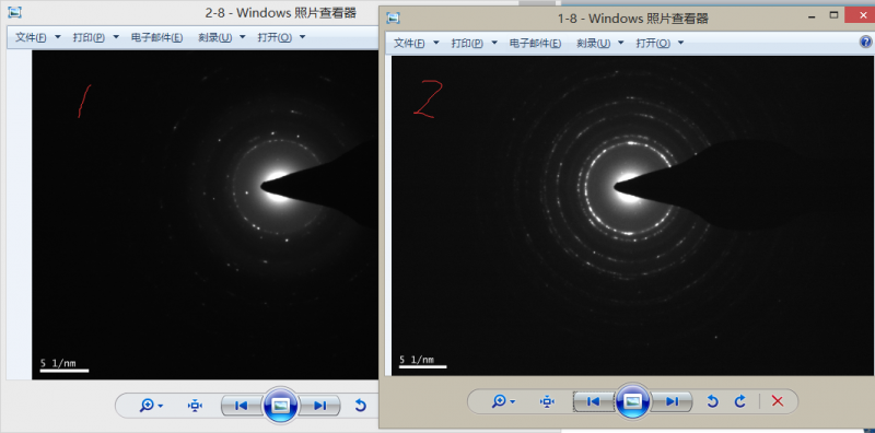 图中1和2 分别是Ni-SiO2 和纯镍的衍射图?第一次做透射,不明白如何判断晶型???透射老师说1是混晶,2是多晶,这样分析对吗?。 再一个就是为什么1中的衍射环只有一个,图2却有多个(样品1和2在XRD中都出现多个镍的特征峰)?O(∩_∩)O谢谢 ![]() ![]() ![]() TEM.png |