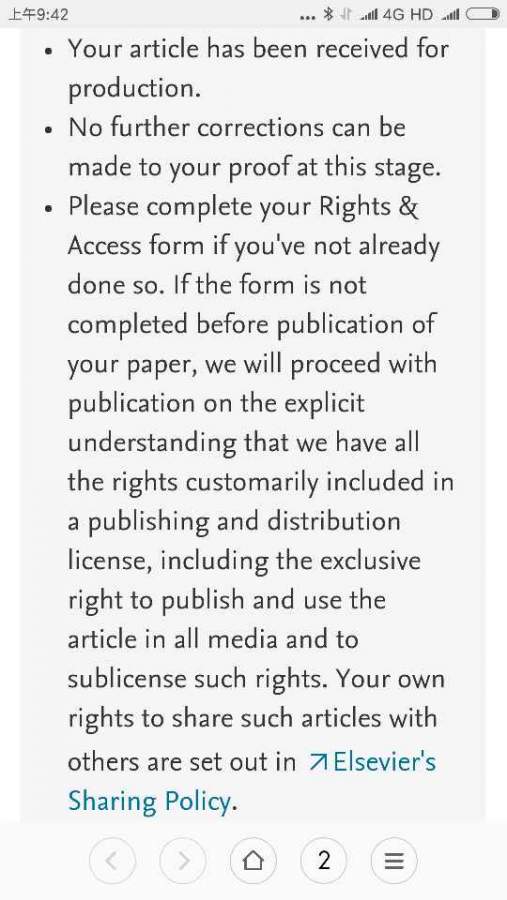 请问到这步了,如何完成rights and access form,我并没有收到版权协议或者出版形式表啊!offprint order form 和 colour order form 也没有收到 发自小木虫Android客户端 |