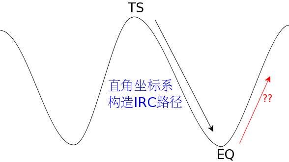 在直角坐标系构造IRC路径(从过渡态到平衡构型并外推到另一側)