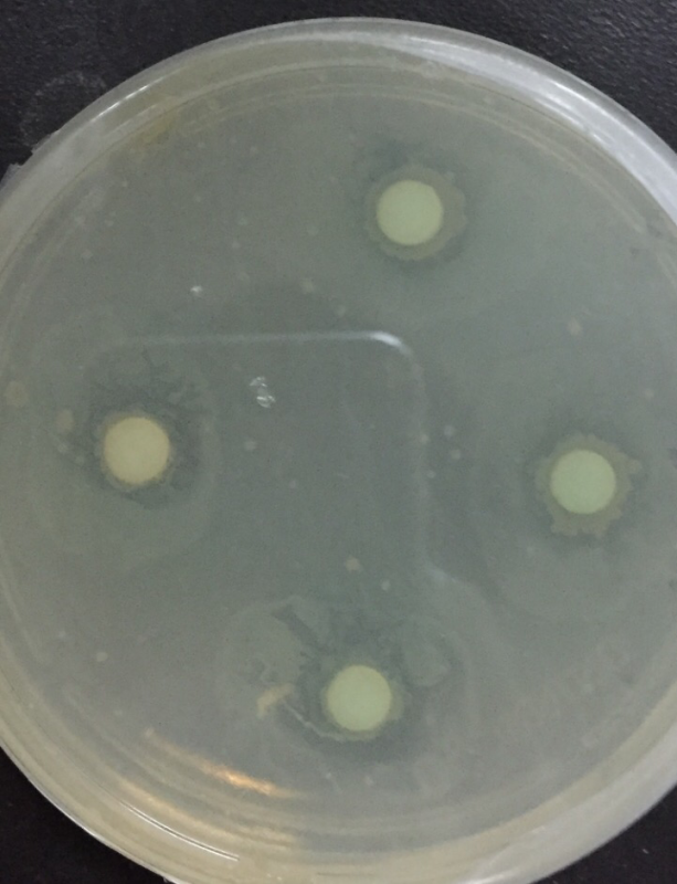 1.纸片周围出现了不明显的环,但是不圆,是否为抑菌圈?是否是药物水溶性不好导致的? 2.纸片上好像也长了一些菌是怎么回事? 发自小木虫IOS客户端 |