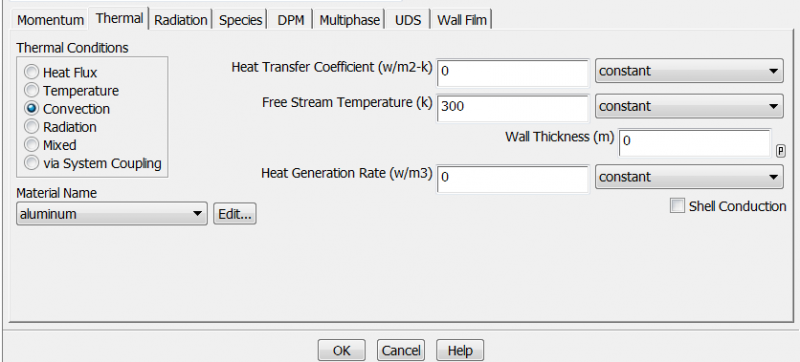 在计算管壳式换热器时,设定了一种新的材料。在对管程wal设置时,其thermal中几个热边界条件应该怎么设,壁面的厚度是否要输入,还有对流传热系数感觉是随着流量变化而变化的啊?求大神解答,我看案例里面都是没有写对流传热系数而是在free stream temperature下写了300K AIV[[$RP8$D152GVS8X6_MO.png |