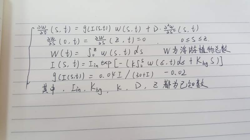 这个方程老师说解析解是没法求的,需要运用差分迭代的方式求数值解,初始条件的话题目没有给出,应该是由自己设定的