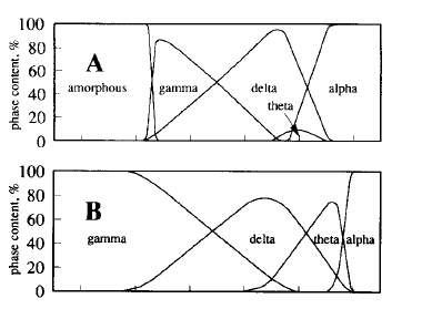 使用XRD计算出氧化铝的各个晶相的含量,包括无定形、α、γ等