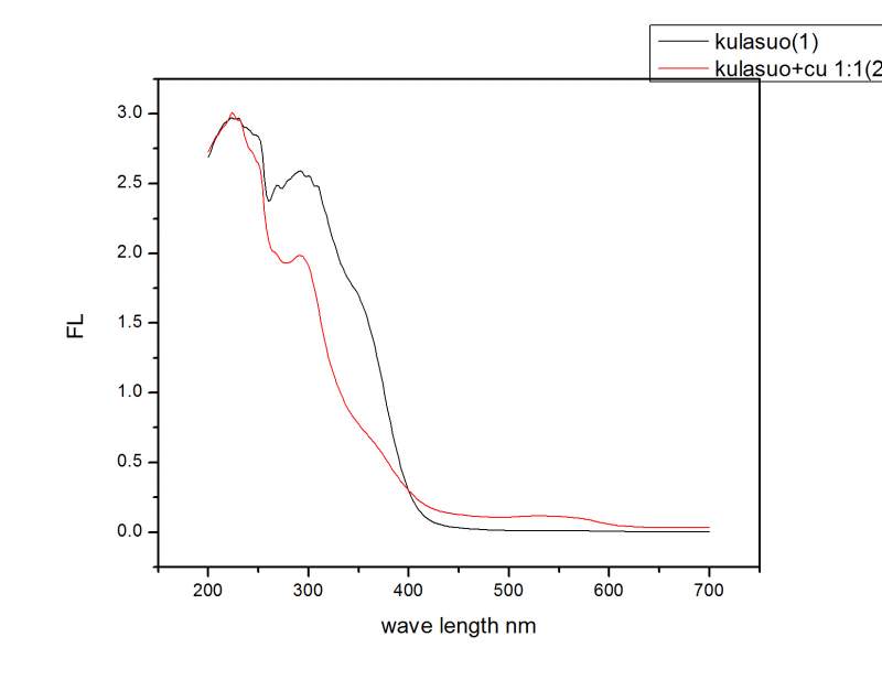 大家好,我思考用芦荟制取铜纳米簇,但是芦荟本身与制备的东西测荧光都在480-510左右,如下图。做紫外,反应液在530处多一个峰,这说明了什么啊?合成了铜纳米粒子? Graph4.jpg Graph5.jpg Graph5.jpg |