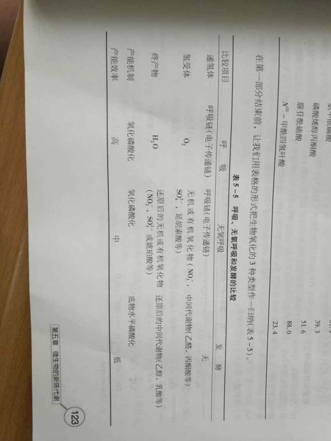 问题1见图片 问题4 主要是氢受体不同,其次他们产生的能量也不同,各自氢受体如下 有氧――外源分子氧 无氧――外源无机氧化物(少数为外源有机氧化物) 发酵――内源代谢产物 发自小木虫Android客户端 |