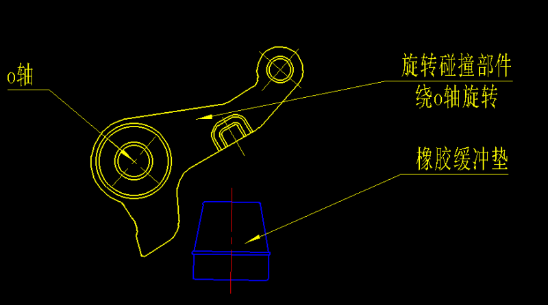 配图说明:旋转碰撞部件绕o轴旋转,然后撞击到橡胶缓冲垫。