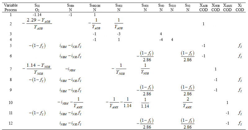 我想请问一下大家关于活性污泥模型中的计量矩阵系数是如何算出来的?关于其中的一些2.29,1.14的数值我知道是关于C,N等的量值转化,但是对于表中整体的系数如何算出来的,我还是不清楚。求大家不吝赐教,谢谢。 计量矩阵.png 半反应.png |