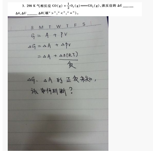 热力学问题,ΔG与ΔA值比较大小疑问已有1人参与