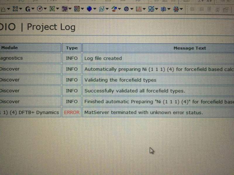 请各位大神指点下,我在用MS的DFTB+模块做计算的时候,跑动力学的时候,设置的是10ps,但是总是跑到2ps就断了,提示的错误是未知错误,下图是我的各种设置还是提示,请大神看后,给出相关指点,谢谢,是不是我参数设置的问题,还是怎么? 这是我左边的各个步骤 这是动力学设置 动力学基本参数设置 相关设置 错误提示 |
