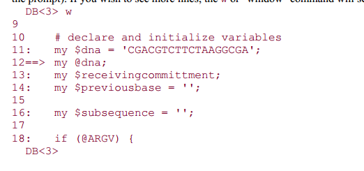 调用perl调试器 “perl -d example.pl" ... 在命令窗口输入w 或者 window 命令查看多行代码,不能成功执行!如图所示,图1是教材演示,图2是自己操作结果,求大虾帮忙 ! 截图1.png 截图2.png |