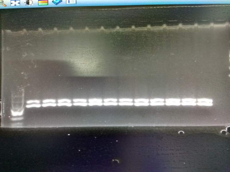 我最近在做qPCR,产物跑胶后居然是这种鬼,marke跑出来条带太淡,上样孔里有目的和内参两个基因,用的是1.5%的胶、500的marke和花青素染料,求助为何会出现这样的结果 IMG_20160330_165727_HDR.jpg [ Last edited by silicare on 2016-3-31 at 08:17 ] |
