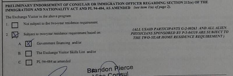 如题,本人受省教育厅骨干教师国际访学项目资助,在美国访学5个月时间,现在回国了。 1.是不是必须在国内服务两年?我的J1签证上画了两个“×”,见附图。 2.两年内,我是否还能申请留学基金委的项目,再次去美国? 3.两年内,如果不走J1签证,比如自费去美国读博士,是否可以? 万分感谢! 国际访学.jpg |