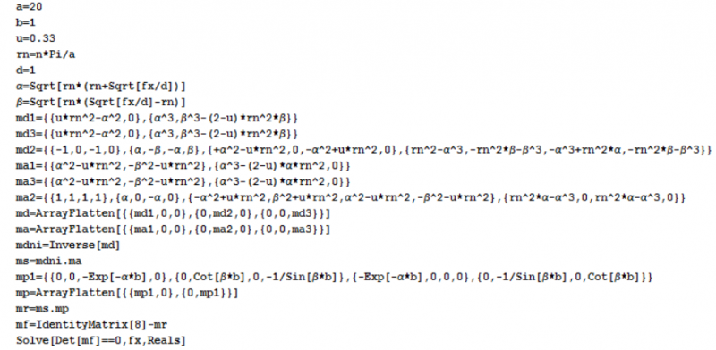 ma2={{1,1,1,1},{\[Alpha],0,-\[Alpha],0},{-\[Alpha]^2+u*rn^2,\[Beta]^2+u*rn^2,\[Alpha]^2-u*rn^2,-\[Beta]^2-u*rn^2},{rn^2*\[Alpha]-\[Alpha]^3,0,rn^2*\[Alpha]-\[Alpha]^3,0}}