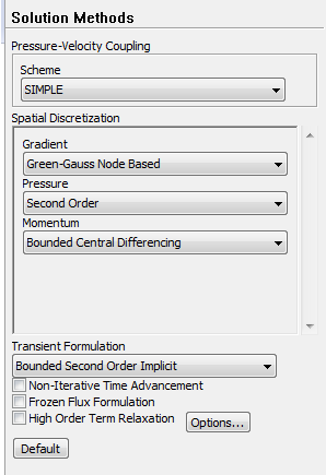 各位大神,,,我在用FLuent算完汽车外流场稳态阶段后,紧接着进行瞬态的求解。如果按照论文上的Solution Method的设置方法,总是开始一小会后曲线就发散。如果我改成下面的设置的话,不知道有没有问题;还有就是采用这种设置一开始的残差曲线、升力系数曲线和阻力系数曲线不知道走势是否正确?还望大神指点一二,不胜感激! 图片1.png 图片2.png 图片3.png 图片4.png |