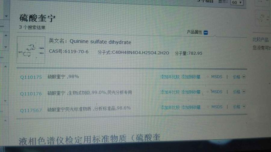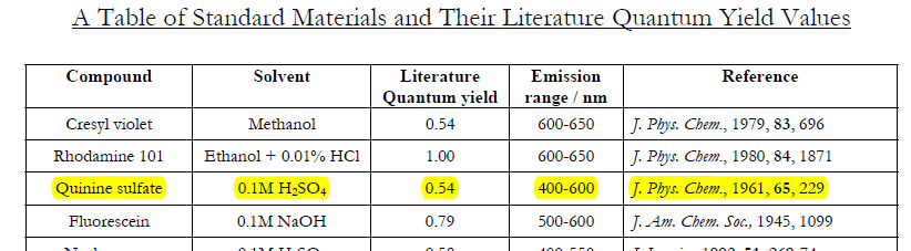 文献中要求参比物质的荧光量子产率是0.54,在阿拉丁官网上看到有三种不同纯度的硫酸奎宁,但是都没有说荧光量子产率,请问各位大神,所有硫酸奎宁的荧光量子产率都是0.54吗,只要溶解在0.1mol/L的硫酸中,在文献中看到的,见附图 P8O@OF{F8HWY`N(RV5JPNTH.png |