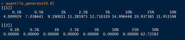 w2<-quantile(W2,c(0.001,0.005,0.01,0.025,0.05,0.1,0.25,0.5))  #计算分位数