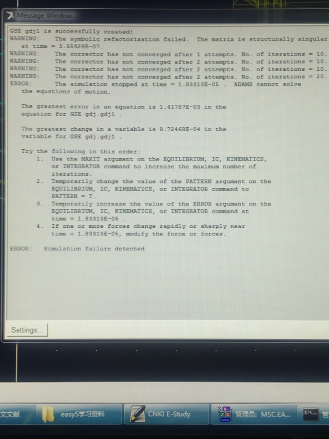 用Easy5和adams联合仿真,报错说积分不收敛导致仿真失败,怎么办?
