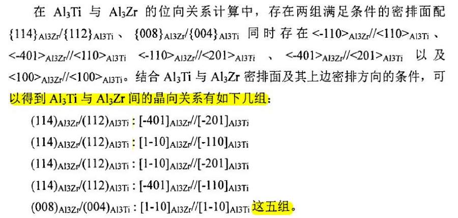 用边边匹配理论可以很好地展示金属凝固过程中新相与母相异质形核的可能性。但是下面这张图片中关于晶向关系对数的判断有问题吧? 若只需晶向位于晶面内,那么晶向关系对数应该远远不止5组。 1.jpg@comma |