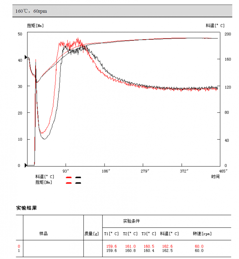 比较最大扭矩,塑化时间,平衡温度和扭矩。黑色曲线扭矩略低,塑化略慢。 发自小木虫IOS客户端 |