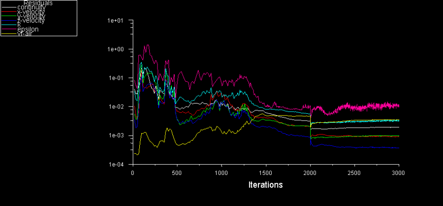 模型大概就是一个虹吸管,上面明渠给恒定流量,管道压力管道,下面接明渠。 用VOF模型模拟,给定初始水位和断面平均流速。 进口是下部速度进口,上部压力进口,明渠上面都是对称面,出口是压力出口。 用的是稳态计算。 算法和残差见下图。也附了data cas 文件。 想请大神帮忙看下如何调整,k e 值根本不动。。 ![]() ![]() ![]() suanfa.png cancha.png |