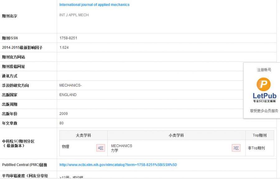 INTERNATIONAL JOURNAL OF APPLIED MECHANICS 请问大家这个杂志怎么样,在小木虫SCI上搜不到,好像是新加坡一个四区的杂志,但是信息太少。谢谢大家了! |