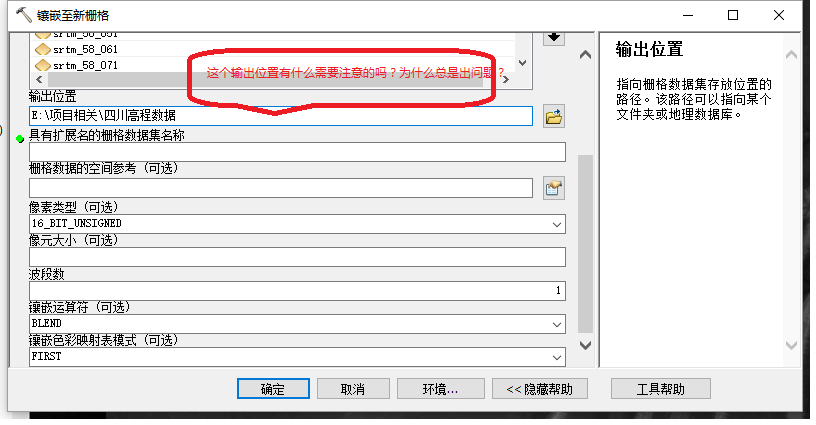 关于栅格数据拼接中输出位置需要注意什么?