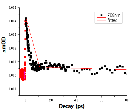 数据是自己测的,做的是二氧化钛包裹金三角片 下面是其TEM 里面的即为金三角片,外层包裹的就是二氧化钛材料。测试目的是想观察是否存在电荷转移分离态以及各向异性。刚接触瞬态吸收,不太懂如何分析。 709nm处进行了拟合,试过origin的方程,可是好像都不能很好的匹配。这是需要自己去建立方程,还是可以将这其中的分段进行拟合?附上原始数据。 片.png 拟合.png |