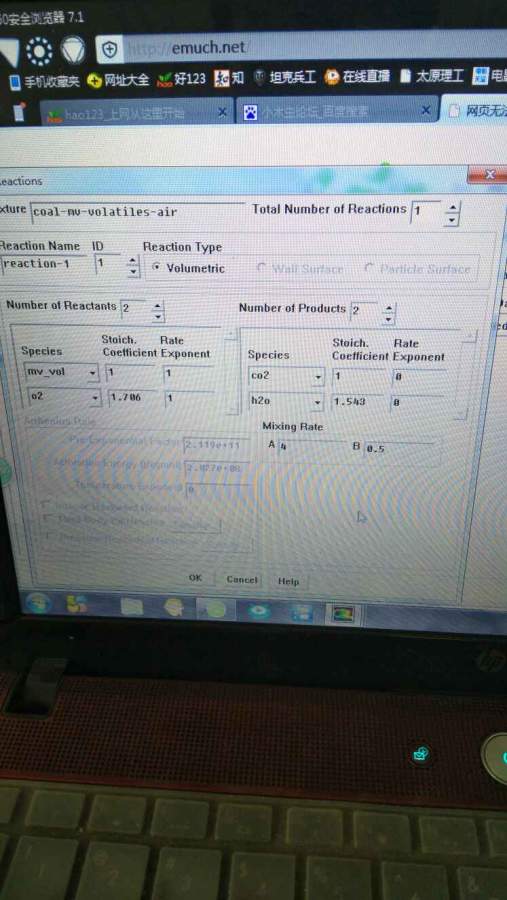 就是组分输运,第一个反应默认是挥发分的反应 后面的是你输入的反应