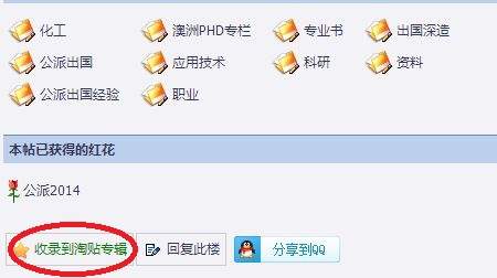 遇到的帖子一般有两种状态: 第一种,具有红圈标示的“收录到淘贴专辑”可以顺利收录到自己建立的淘贴专辑里。 第二种,没有这个显示,不能收集。可是明明上面就有很多专辑已经收藏了这个帖子,这是为什么? 求各位用过淘贴的虫友帮帮忙。 |
