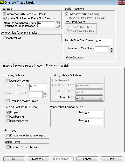 麻烦咨询一下,fluent里面dpm设置时候使用非稳态颗粒