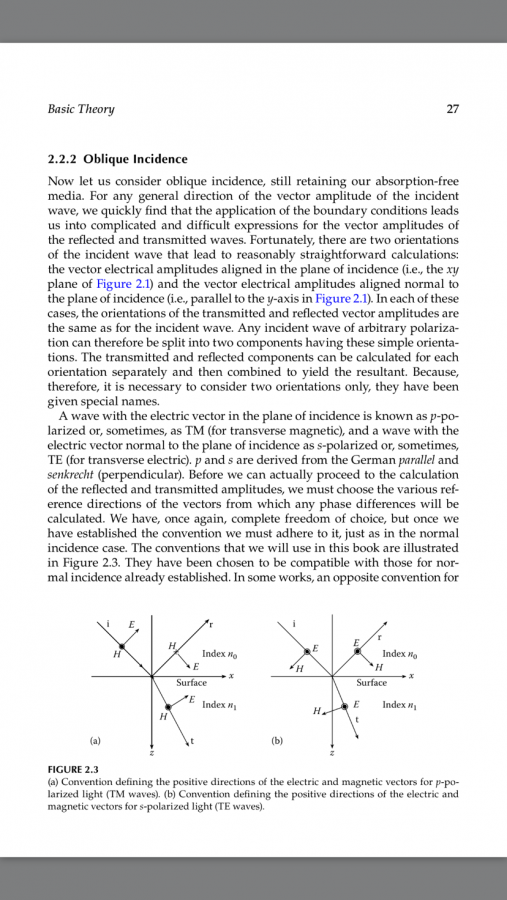说反了吧,透射比/反射比是折射率/入射角的函数,具体表达式可由麦克斯韦方程组及电场磁场边界条件导出,建议找一本薄膜光学相关的书看一下推导。 发自小木虫IOS客户端 |