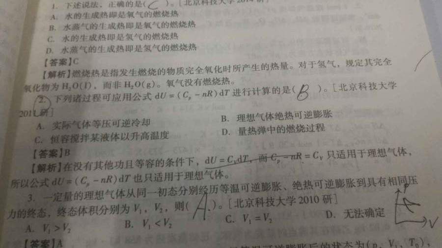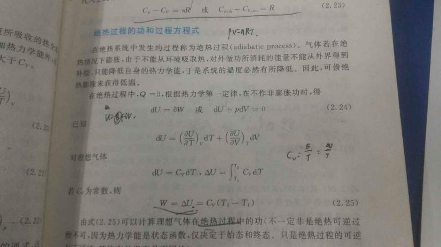图一,第二题,Cv是恒容条件下应用的吧,选项B理想气体绝热膨胀,既然膨胀了就不恒容了吧?课本上(图二)我知道自己理解有误,但不知道错在哪儿,求解 [ Last edited by 冰点降温 on 2016-4-8 at 09:30 ] |