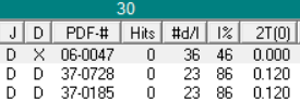 jade6.5中物相检索后,会出现一堆PDF卡片,但是有一些信息不知其具体含义,可否请知道的大神指教一番? 具体的就是从第四列就是FOM值后的列开始,分别是J D Hits #d/l 1% 2T(0) 。如果知道其中之一也请不吝赐教! DPT8Q1_W3GYYO681O6V[911.png |