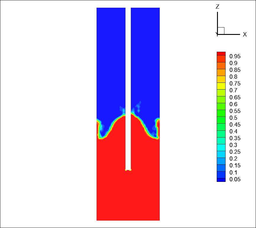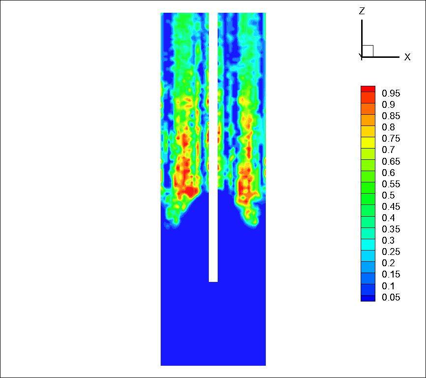 我模拟的是顶吹炼铜,高温液体为第一相,包含多种组分,气体为第二相,同样包含多种组分。在出口处,假定气相回流,液相全部由出口流出,故设置气相的backflow volume fraction=1,质量守恒,但是在fluent计算的组分云图中,生成的熔体总是从出口回流。如下图。请问大家,这个是由于什么造成的? cu.jpg cu2o.jpg cu2s.jpg |