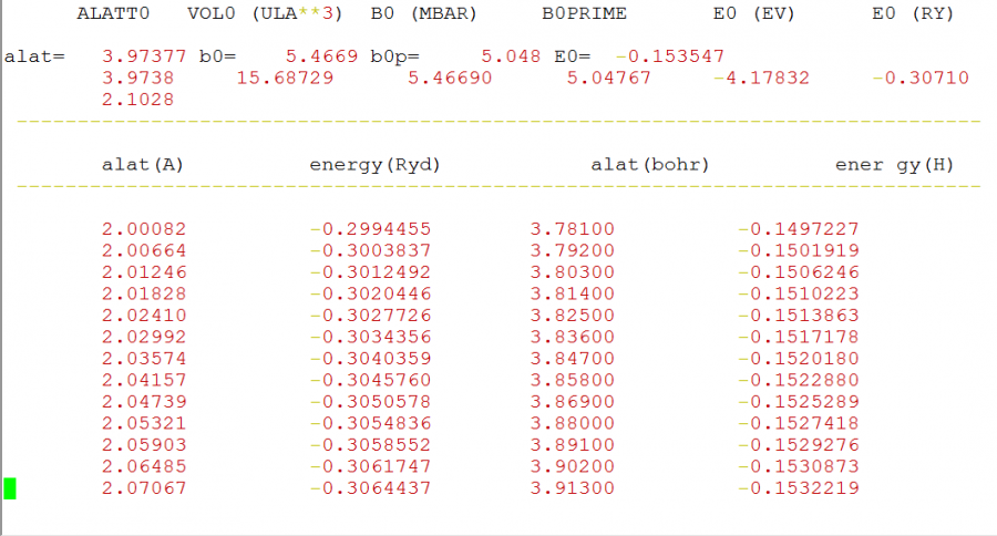 我想问一下,我最近做状态方程模拟,根据侯老师的做法和例子进行测试,可是得到的out.m结果却不一样呢,B0等于5.多,很明显的错误,不同的就是我在施工脚本的时候,使用的是gfortran编译器对其murn.f进行编译,而网上用的是g77,会对结果有影响吗?图1是我模拟的结果,图2是侯老师给出的例子,谁看见帮忙下,金币奉上!谢谢 1.png 2.png |