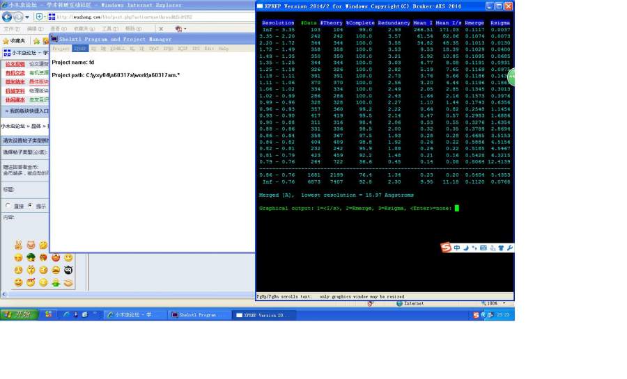 如题,经常碰到见到的数据钼靶的分辨率达不到0.77,但是为了省事还原的时候都改成了0.77,以致完整度非常的低,见到用xprep定空间群的时候有如下图出现,觉得xprep应该可以修改这个截取的分辨率,如果可以求大神指点,谢谢! |