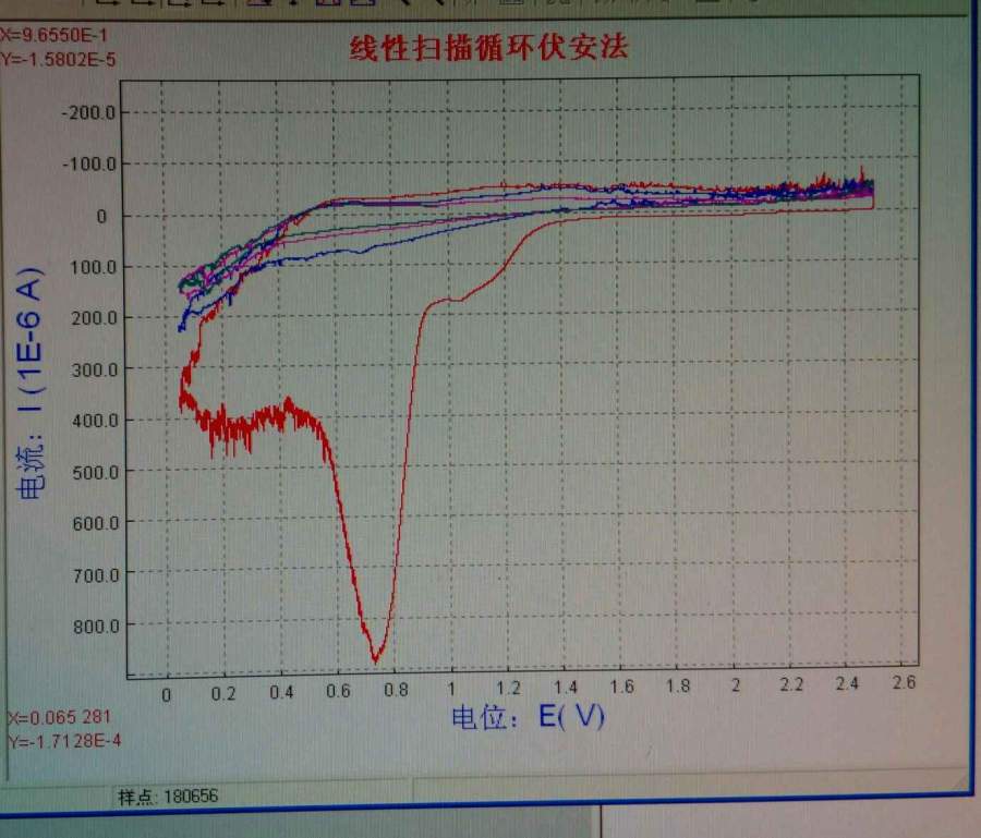 我测的二氧化锡线性扫描循环伏安法曲线,正向电流比反向电流大很多,是什么原因?能得出什么信息?(印象上好像电流接近时候循环性能好)