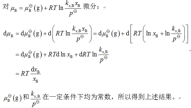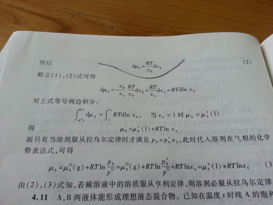 试用吉布斯杜亥姆方程证明在稀溶液中若溶质服从亨利定律,则溶剂必服从拉乌尔定律。 这个题的答案划线部分是如何得到?求推倒一下,不懂 7C924AD33E3FA2A25B188E1DA586F677.jpg A4851A763292B56660C38520B6A89649.jpg |