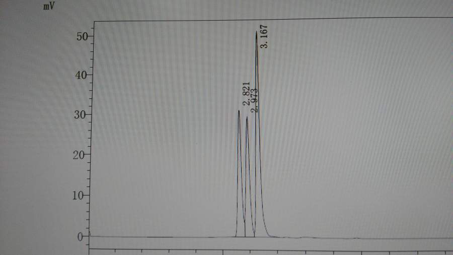如图,我用纯甲醇做的流动相,请问该如何改变流动相,能让三个峰明显的分开。初学者请大家多多指教。