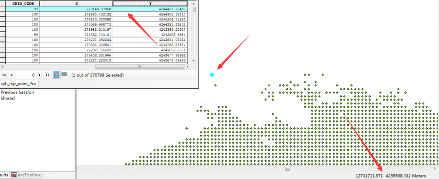 Arcgis用“calculate geometry”计算的坐标和右下角显示的坐标不一样?(单位:米)