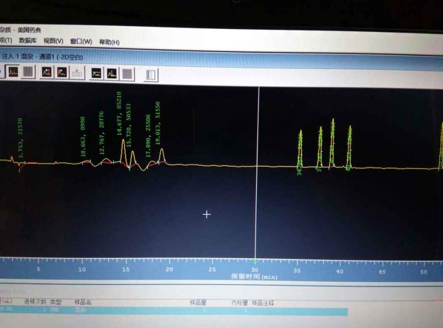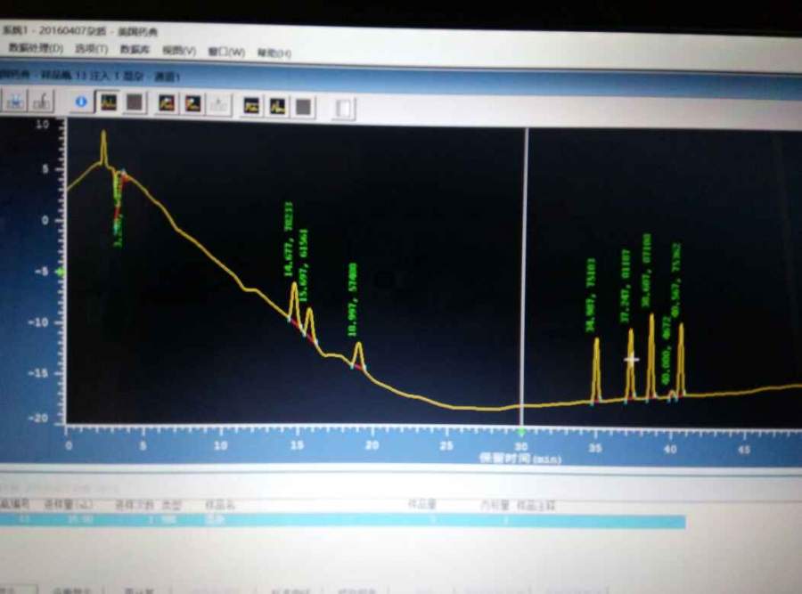 求助:高效液相色谱以甲醇为溶剂,乙腈为流动相,梯度洗脱为什么在37min左右会出峰?