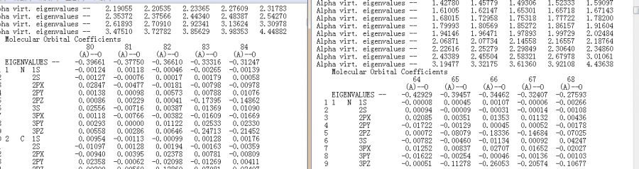 同样在#HF/3-21G*Pop=Reg上计算为什么有的分子前沿轨道系数是从80开始,有的是从64开始,从64开始的就没有87和88的轨道系数了,这是怎么回事呢?? BP1L4FG4VRTD]IT~$W5%X27.png |