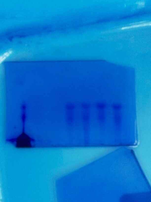 已跑多次,操作没问题后。出现问题,15%的胶,,,标准品是牛血清蛋白,待测的是真核生物的,第一张是最近刚做,照片反了,从下往上跑,右边第一个,污了一块的是牛血清,其他是样品,第二张照片是以前做得,条带不清晰,我加大了sds做得,电压是 20, 80。 现在我主要想知道条带不清楚问题,以及为什么样品不到下面,,,,,是否需要加mark 看看是不是胶的问题 @biostar2009 @飞约疯人院 @youlinglyw 发自小木虫Android客户端 |